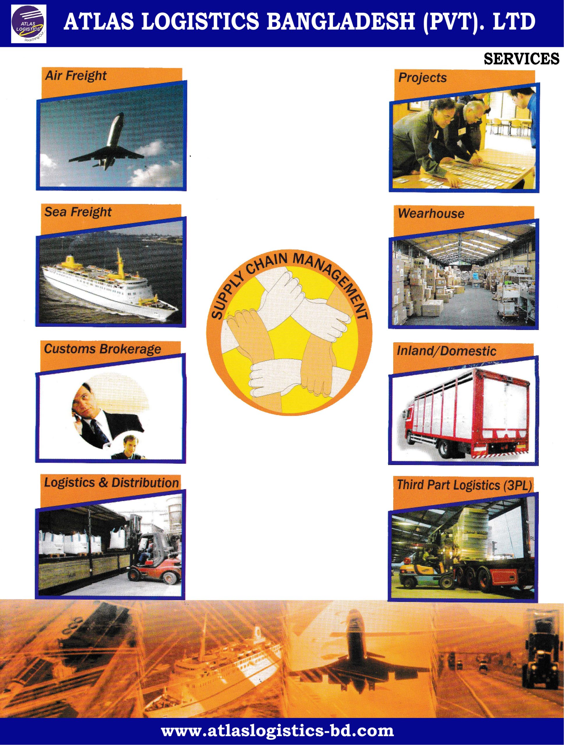 Atlas Logistics Bangladesh (Pvt.) Limited. It is one of the top leading Shipping , NVOCC, Freight Forwarding, Projects and all type of Logistics Service provider Organization in Bangladesh. Our service and network spread most of the world through our global set-up having Logistics Centre in the Asia-Pacific regions.